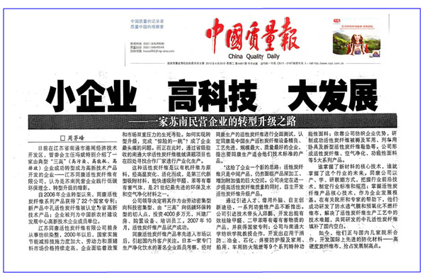 中國質(zhì)量報——小企業(yè)、高科技、大發(fā)展"一家蘇南民營企業(yè)的轉(zhuǎn)型升級路"